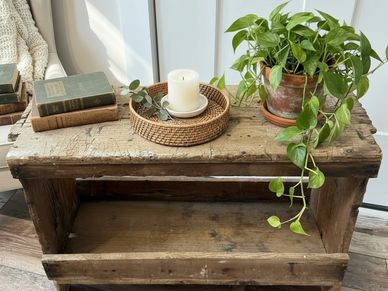 Embrace timeless charm with this primitive, weathered wood carpenter bench, showcasing authentic aged barn wood and straightforward, historic craftsmanship. Its rich, rustic aesthetic and functional, sturdy design make it a sought-after accent piece for adding character to any room. Perfect for use as a unique, low-profile console table, entryway shoe storage, or rustic shelving. Check out the photos to see the natural cracks and divots that enhance this bench's rustic charm!