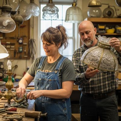 The Ruby Rooster specializes in restored lighting from the mid 1800's to early 1900's. It takes patience, skilled craftsmanship and attention to detail in order to protect the structural integrity and value of each lighting piece. Each piece is deconstructed, refurbished/restored and then reassembled utilizing new wiring, hardware and/or finishes to complete the process. Although time consuming, it is also incredibly rewarding.